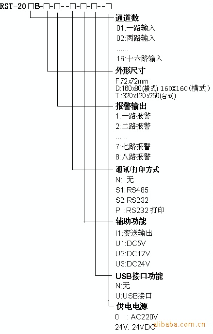 如:有一臺表的型號是:RST208B-D-2-U;主機型號:RST208B,D型藍屏無紙記錄儀;