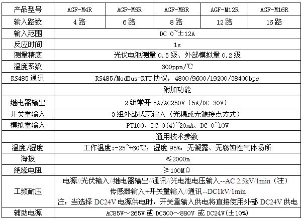 AGFR系列光伏匯流采集裝置是專門應(yīng)用于智能光伏匯流箱,用于監(jiān)測(cè)光伏電池陣列中電池板運(yùn)行狀態(tài),光伏電池電流測(cè)量,匯流箱中防雷器狀態(tài)采集、直流斷路器狀態(tài)采集、繼電器接點(diǎn)輸出,帶有風(fēng)速、溫度、輻照儀等傳感器接口,裝置帶有RS485接口可以把測(cè)量和采集到的數(shù)據(jù)和設(shè)備狀態(tài)上傳。