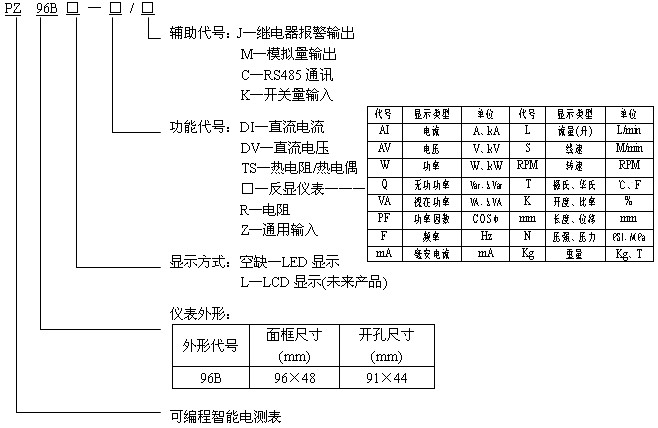 3、PZ96(L)-AI、AI3、AV、AV3、F多可帶3路模擬量輸出,PZ96(L)-P3(4)、E3(4)多可帶2路模擬量輸出。