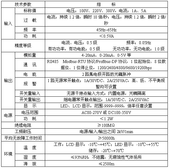 該系列儀表采用交流采樣技術(shù),能分別測量電網(wǎng)中的電流、電壓、功率、功率因數(shù)和電能等參數(shù),可通過面板薄膜開關(guān)設(shè)置倍率。帶RS-485通訊接口,采用Modbus或Profibus協(xié)議;也可將電量信號轉(zhuǎn)換成標(biāo)準(zhǔn)的直流模擬信號輸出;或帶開關(guān)量輸入/輸出,繼電器報(bào)警輸出等功能。