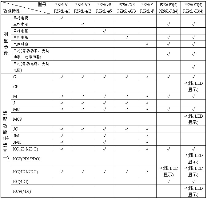 2、PZ96(L)-E3(4)在選配KC(4DI)功能時(shí)具備1路有功電能脈沖信號輸出端口,在選配KC(2DI/2DO、4DI/2DO)功能時(shí)無脈沖信號輸出端口;