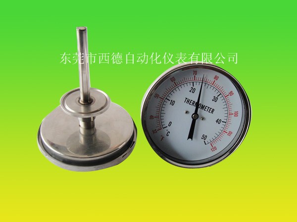 表面直徑:60MM,75MM,100MM ,150MM卡箍:50.5MM(1.5寸),64MM(2寸)用途說明:雙金屬溫度計是采用雙金屬片為感溫元件的一種測溫儀表,廣泛用于機(jī)械