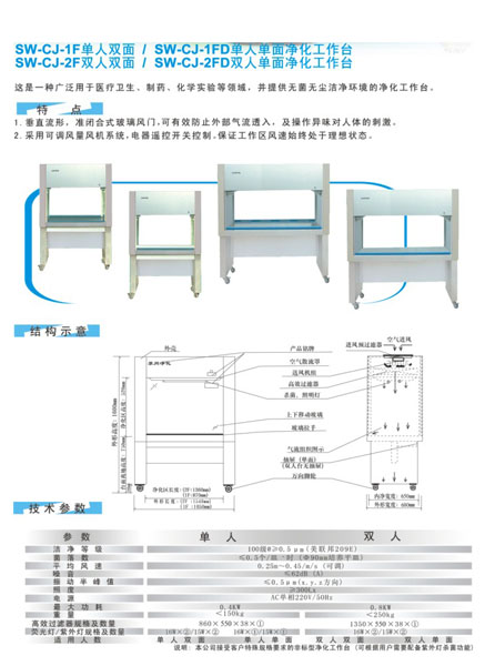 SW-CJ-1F單人雙面/SW-CJ-1FD單人單面凈化工作臺