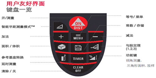 產(chǎn)品用途:本產(chǎn)品適用于家庭裝修、工程裝潢、建筑施工、房地產(chǎn)開發(fā)管理、房產(chǎn)測繪、房地產(chǎn)評估、衛(wèi)生監(jiān)督、城市監(jiān)察、交通管理、電力、電信、氣象、林業(yè)、農(nóng)業(yè)等各行各業(yè),可以簡單、快速、精確地測量室內(nèi)、室外及難于接近部位的距離,可以精確地測量建筑物的高度及室外較長距離。