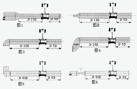 為了確保儀表正常、準確運行,傳感器安裝點的上下游必須有一定的直管道,以調(diào)整流場,如圖所示。