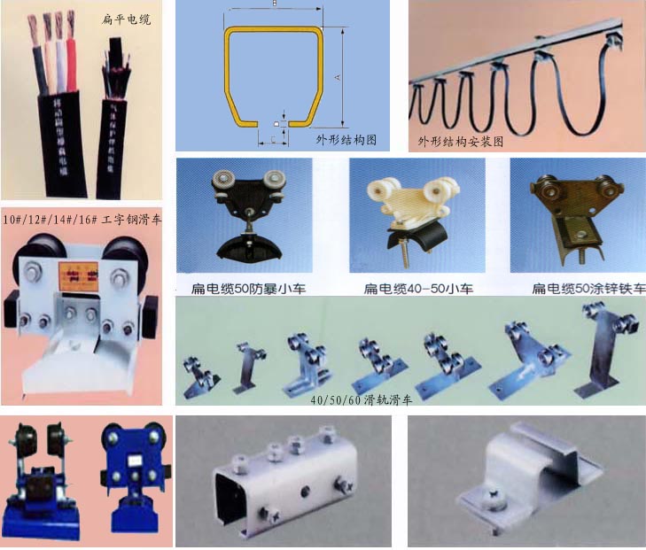 電纜滑軌該產(chǎn)品由扁平電纜、攜帶電纜用四輪臺車和導(dǎo)軋三大部分組成。扁平電纜采用非延燃性材料,可用于戶內(nèi)外和接觸油污的場所,具有一定的耐氣候性能,與圓電纜比具有彎曲半徑小,壽命長等優(yōu)點(diǎn)。