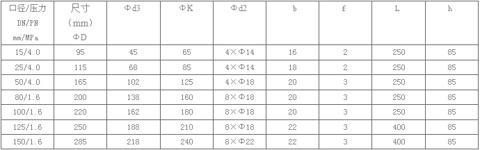 4.工作壓力: DN15~50,4 MPa; DN80~100,1.6MPa。