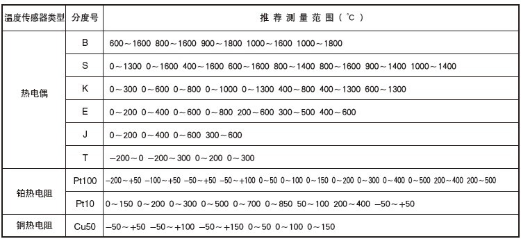 二、帶溫度轉(zhuǎn)換器顯示熱電阻(偶)測溫范圍