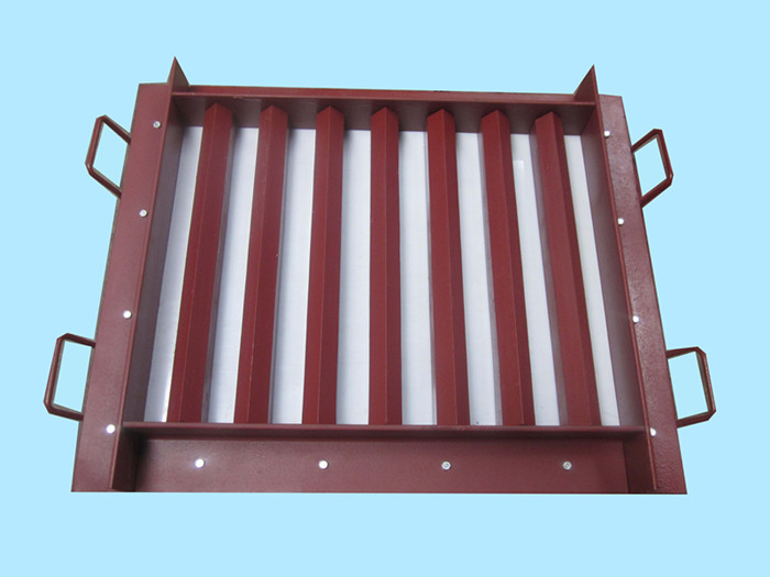 本設(shè)備為鋼制模具,采用7道刀口(刀口截面形狀為直角等腰三角形底邊和正方形聯(lián)結(jié)而成,刀口長600mm)誘導(dǎo)受約束的混凝土開裂,測試敏感度高,能反映混凝土的早期抗裂性能(對絕大多數(shù)混凝土,均可使其在12小時內(nèi)開裂)