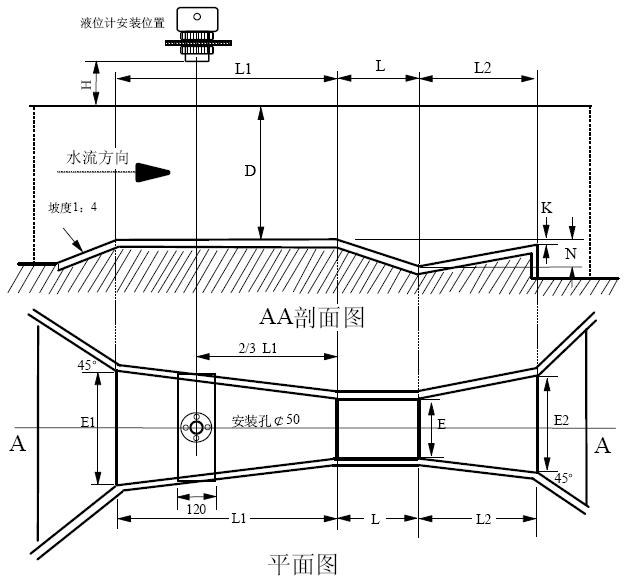TH-990M儀表直接測量的物理量是液位。用于明渠測流量時,在明渠上安裝量水堰槽。量水堰槽把明渠內(nèi)流量的大小轉(zhuǎn)成液位的高低。儀表測量量水堰槽內(nèi)的水位,再按相應(yīng)量水堰槽的水位-流量關(guān)系反算出流量.普通明渠內(nèi)流量與水位之間的對應(yīng)關(guān)系,受渠道的坡降比和表面糙度影響。在渠道內(nèi)安裝量水堰槽,產(chǎn)生節(jié)流作用,使明渠內(nèi)的流量與液位有固定的對應(yīng)關(guān)系。這種對應(yīng)關(guān)系主要取決于量水堰槽的構(gòu)造尺寸,渠道的影響減至zui小。