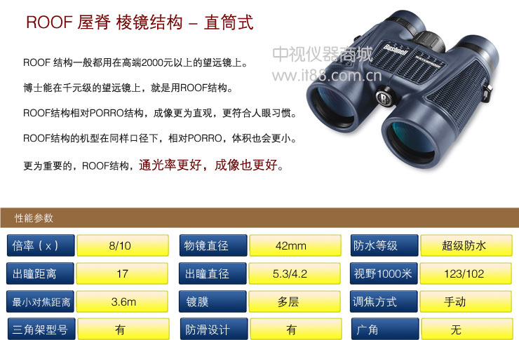 型號:博士能H20 8X42雙筒望遠(yuǎn)鏡