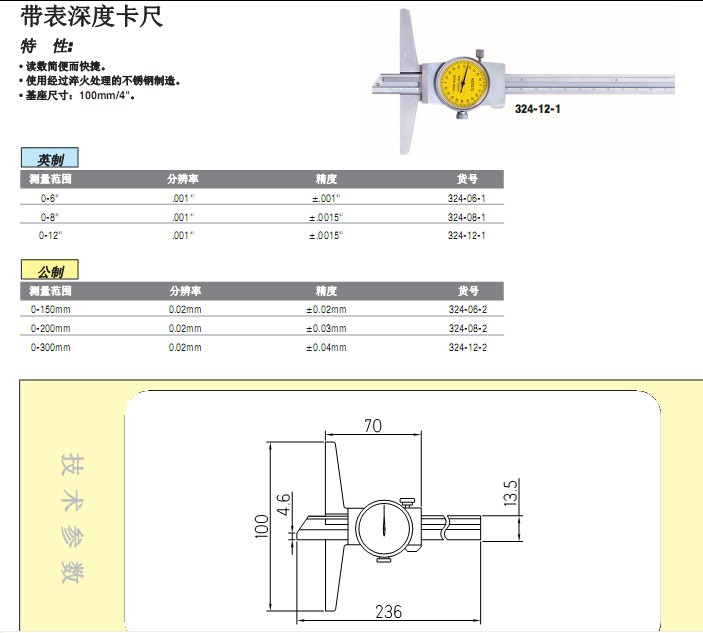 | 帶表深度卡尺 |