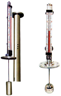 該產(chǎn)品由本體(由上、下導(dǎo)管組成)、翻板箱(由紅、白雙色磁性小翻板組成)、浮子(由磁體、頂桿、浮筒 組成)、以及液位變送器等組成,其結(jié)構(gòu)如圖所示。工作原理為:容器內(nèi)的浮筒(按不同介質(zhì)和壓力針對(duì)研制), 在下導(dǎo)管中隨液面高度的變化而上下浮動(dòng)并通過(guò)頂桿使磁體在上導(dǎo)管內(nèi)上下移動(dòng),促使本體外的翻板翻動(dòng) 并顯示紅、白顏色來(lái)指示液面高度,同時(shí)液位變送器將液位信號(hào)傳送至控制中心進(jìn)行液位指示和控制,也 可通過(guò)計(jì)算機(jī)進(jìn)行集中監(jiān)控。