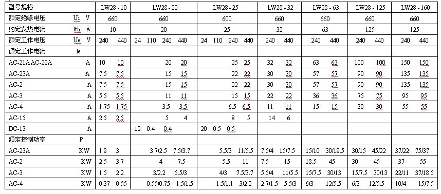 LW28系列轉(zhuǎn)換開關(guān)主要適用于交流50Hz、額定工作電壓440V及以下、直流電壓240V及以下,額定電流至160A的電氣線路中,供手動不頻繁接通或分斷電路,作為控制或轉(zhuǎn)換