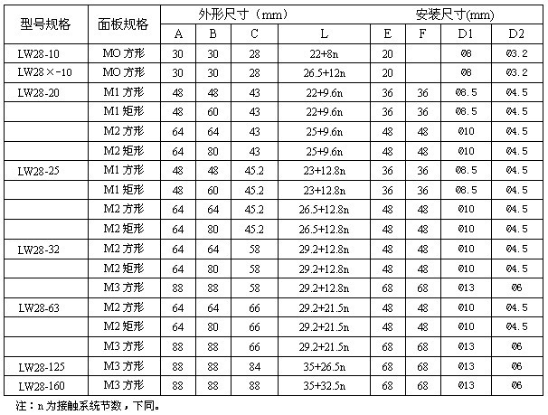(1)定位型轉(zhuǎn)換開關(guān)有1~12節(jié)(63A及以上的開關(guān)僅有8節(jié));