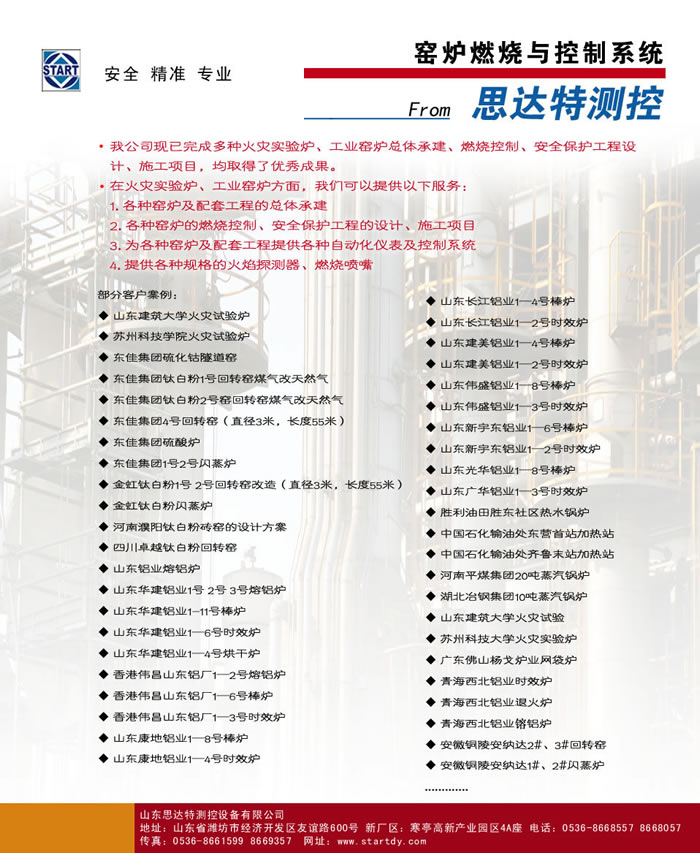 山東思達特測控設(shè)備有限公司是一家專業(yè)研發(fā)生產(chǎn)流量儀表(AS氣體超聲波流量計、智能型渦街流量計、電磁流量計、微性液體流量計、壓力變送器、無紙記錄儀等)并提供燃?xì)饪刂?、熱網(wǎng)監(jiān)控、工業(yè)窯爐和遠(yuǎn)程控制等工程服務(wù)的高科技股份制公司。