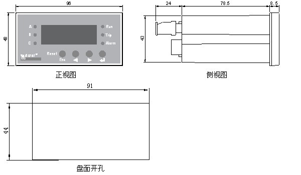 附加功能:RS485通訊、2路開關(guān)量輸入、8個(gè)事件記錄