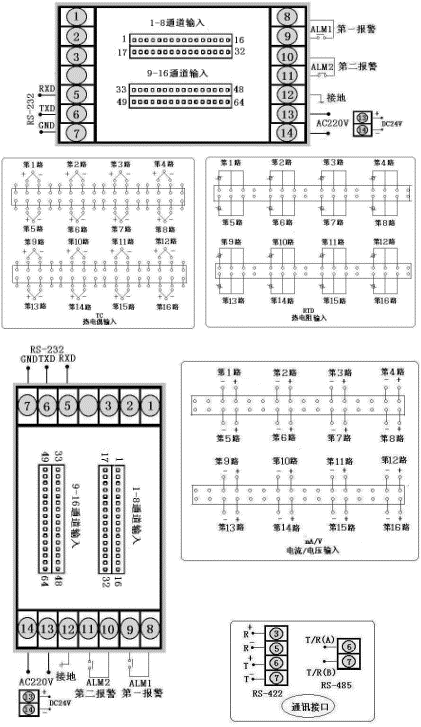 | 十六路巡檢統(tǒng)一控制/報(bào)警輸出,通訊方式為RS485,輸出方式為繼電器輸出,輸入類型為CU50,一報(bào)警為下限報(bào)警,第二報(bào)警為上限報(bào)警,AC90~265V供電,豎表。 |