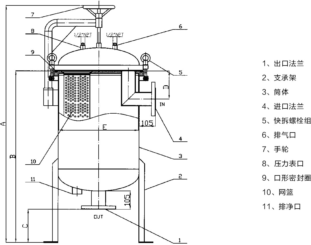 進(jìn)底出和底進(jìn)底出式、上進(jìn)下出式、側(cè)進(jìn)側(cè)出式,過(guò)濾器主題材質(zhì)為優(yōu)質(zhì)不銹鋼,如