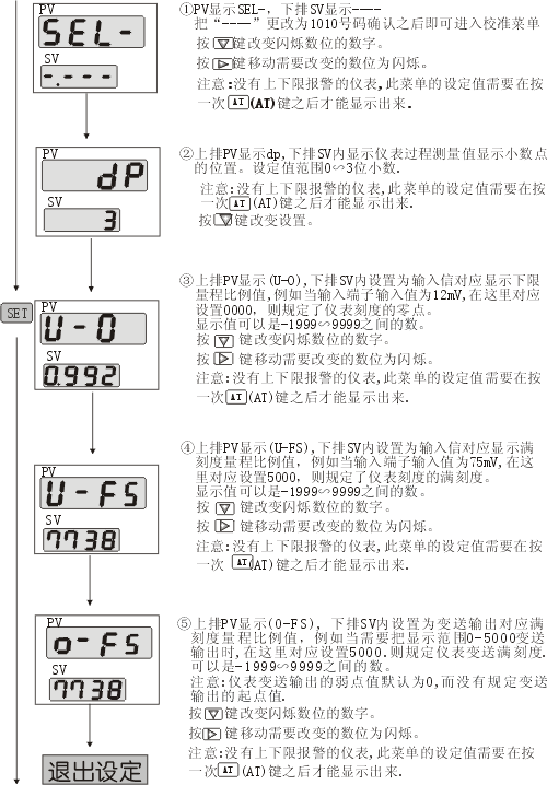 | (1) 傳統(tǒng)可調(diào)整電位器校準。打開儀表殼體,找到標注ZORE的可調(diào)電位器,短路信號輸入端子,扭動此可調(diào)電位器使LED 顯示為零值。找到標注FS的可調(diào)電位器,在信號輸入端子輸入滿刻度量程值的90%的標準信號,扭動此電位器使LED顯示目標值。 |