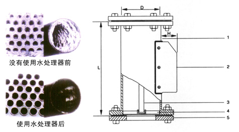我公司電子除垢儀(又名電子水處理儀,多功能電子水處理器,高頻電子除垢儀)是一種采用物理方法進行水處理的高科技節(jié)能產品。它在保持原水化學成分的基礎上,通過改變水分子的物理結構,從而達到防垢、阻垢的效果,同時高頻磁場所產生的微電環(huán)境可遏制微生物的生長,從而達到殺菌、滅藻的目的。該產品是由一臺高頻電能產生器和一套交變電場換能器通過高頻電纜連接而成。產品類型分為直通型、角通型、同側型、異側型等多種形式。