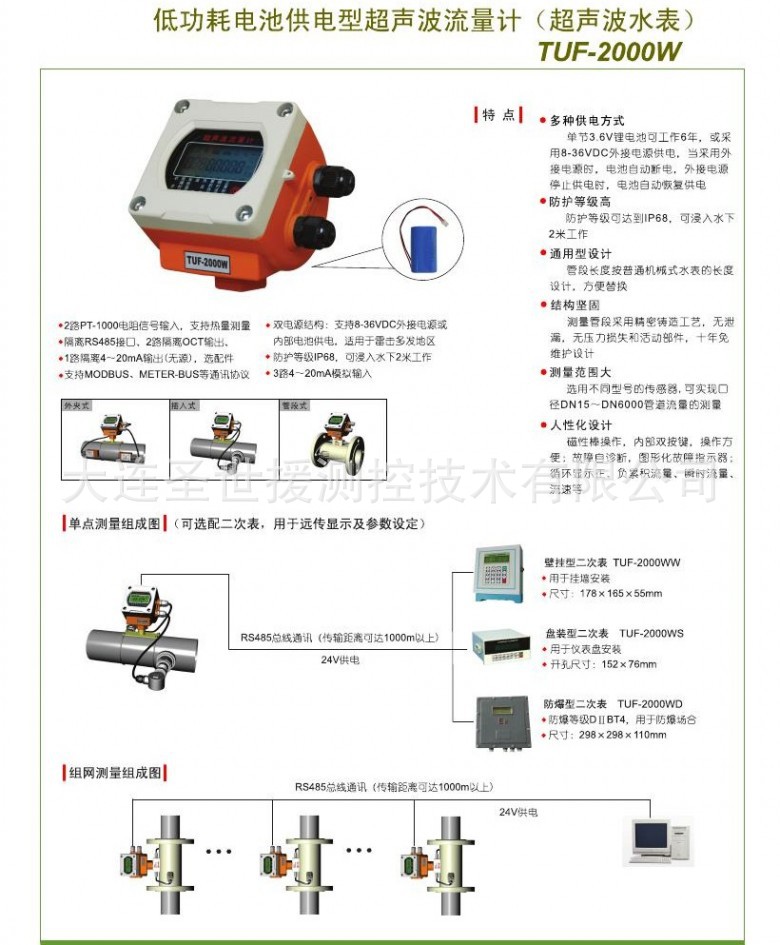 大連圣世援測控技術(shù)有限公司的誠信、實(shí)力和產(chǎn)品質(zhì)量獲得業(yè)界的認(rèn)可。我們的產(chǎn)品也均通過國家計(jì)量院的鑒定,多種產(chǎn)品被評為國家級(jí)重點(diǎn)新產(chǎn)品、用戶滿意產(chǎn)品。根據(jù)市場需求,GPRS無線監(jiān)控系統(tǒng)及internet網(wǎng)絡(luò)技術(shù)實(shí)現(xiàn)了計(jì)算機(jī)與流量計(jì)之間的無線數(shù)據(jù)通信。從而實(shí)現(xiàn)流量的數(shù)據(jù)采集。這樣也大大提高了管理水平,節(jié)約了管理成本,降低了勞動(dòng)強(qiáng)度。并提供管網(wǎng)漏水檢測服務(wù)與流量檢測服務(wù)。我們的產(chǎn)品主要有超聲波流量計(jì)、超聲波熱/冷量表、超聲波水表、超聲波液位計(jì)、電磁流量計(jì)、超聲波測漏儀等。產(chǎn)品廣泛應(yīng)用于石油、化工、冶金、水利、供暖、醫(yī)藥、造紙、食品、軍工、污水處理等行業(yè) 。 熱誠歡迎各界朋友前來參觀、考察、洽談業(yè)務(wù)。