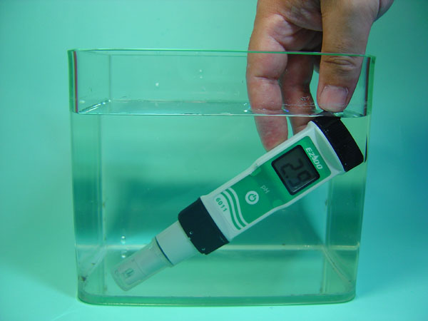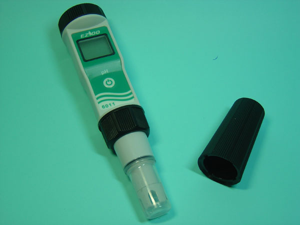 6. 清洗電頭擦干,將電浸入待測溶液中,輕輕攪拌.并等待顯示穩(wěn)定數(shù)值,即為待測液PH值,不需每次使用都校正,使用10次或2星期,校正一次即可.