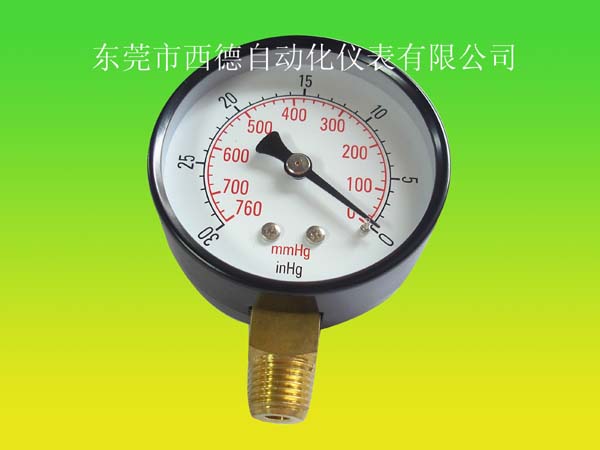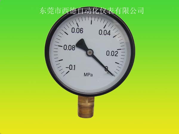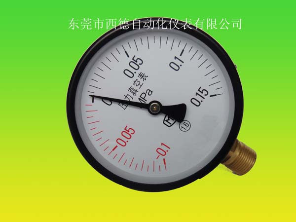 表面直徑:40MM,50MM,60MM,100MM精度等級:1.6單位:-0.1Mpa,-76cmhg,-760mmhg,-30inhg,-100kpa,表殼:鐵殼黑色電泳或不銹鋼用途說明:用