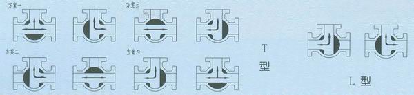 備注:三通球閥一般采用兩閥座結(jié)構(gòu),如流向圖A所示兩種工況。選用兩面閥座L型結(jié)構(gòu)(即Q44型)。流向B中①和④兩種工況亦可選用兩閥座T型結(jié)構(gòu)(即Q45型)。流向圖B②和③兩種工況必須選用四閥認T型結(jié)構(gòu)(即Q45型)。其余工況也可以先用四閥座結(jié)構(gòu),但在訂貨合同中注明閥座結(jié)構(gòu)。如閥門有其它要求請參閱樣本《閥門的型號編制方法》填寰相應(yīng)的要求代號。
