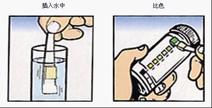 1.插入被檢測液中1秒,15秒后與色卡比色