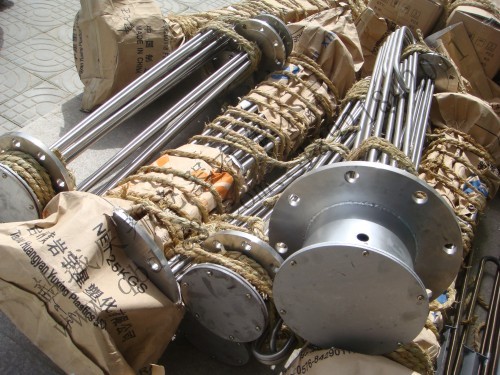 法蘭式加熱管結(jié)構(gòu):將多根金屬加熱管焊接在法蘭上集中加熱,主要用于敞開(kāi)式、封閉式的溶液箱和循環(huán)系統(tǒng)中加熱用。法蘭式加熱管產(chǎn)