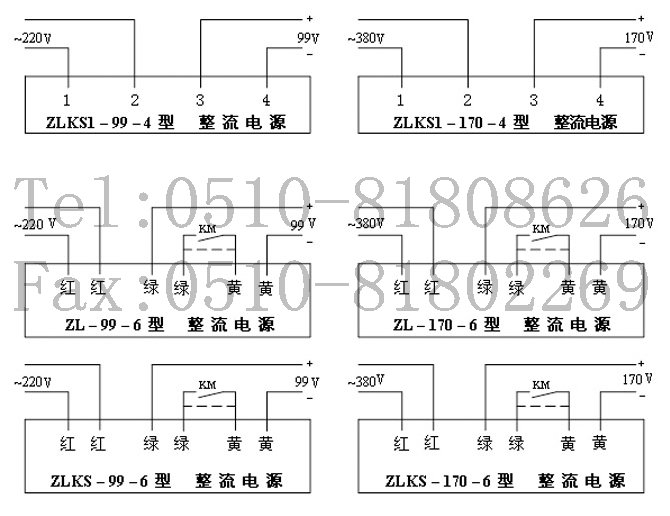 5.(ZLKS、ZL1、ZLKS1、ZLKX1、ZKKXS1)輸入交流電壓為220V,輸出直流電壓為99V