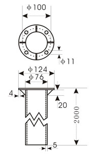 支架桿制作尺寸(單位:mm) 法蘭連接 環(huán)套連接 |
