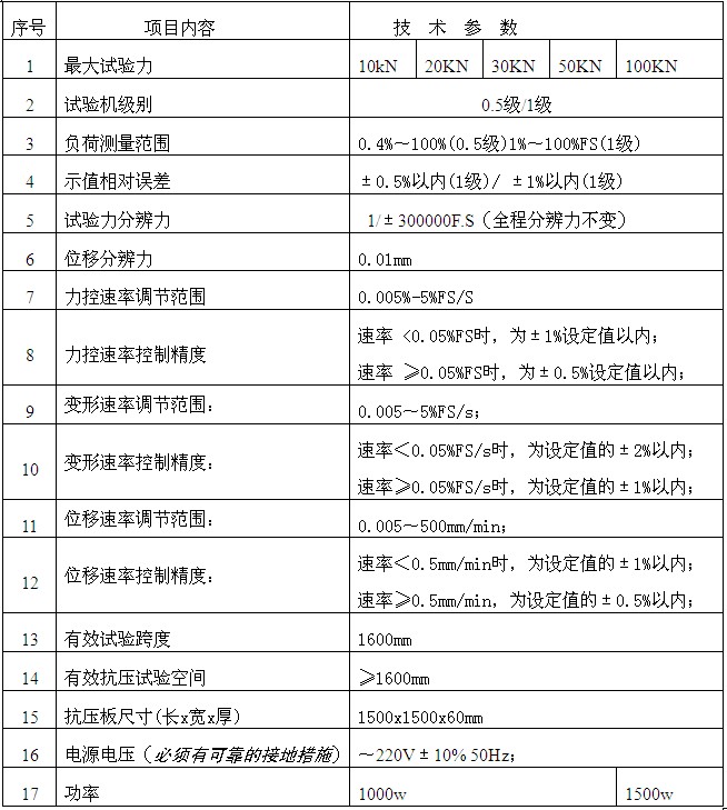 2.紙箱壓力試驗(yàn)機(jī)的主要技術(shù)指標(biāo):