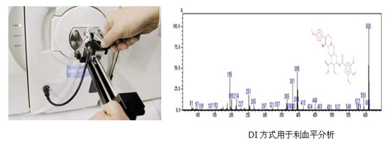 氣相色譜工作溫度下不能氣化、熱不穩(wěn)定的液體或固體樣品可以用直接進(jìn)樣桿將樣品直接導(dǎo)入質(zhì)譜進(jìn)行分析。直接進(jìn)樣技術(shù)滿足用戶對(duì)純樣品或者對(duì)HPLC收集餾分等進(jìn)行快速鑒定的需要。