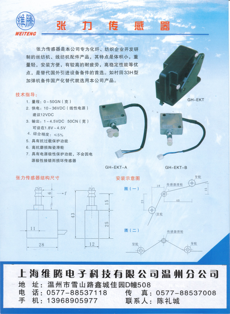 該產(chǎn)品適用于日本村田33H型加彈機TCS張力傳感器對于有實力和有意向的客戶,我們可以提供產(chǎn)品試用,滿意后在合作!QQ 2