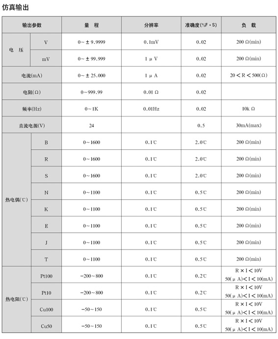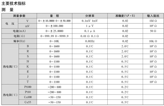 特點: * 全中文藍屏顯示介面與智能化操作系統的組合,令儀器更具人性化. * 功能齊全,18種輸入,輸出同步運行,操作,電源隔離,互不影響. * 有V,mV,mA,Ω和熱電偶(TC),熱電阻(RTD)信號的輸出與測量.24VDC配電輸出為變送器提供回路電源,并可同時測量變送器所輸出的mA值. * 具有頻率(Hz)的測量和仿真功能. * 全數字化操作,智能化菜單提示;更直觀更簡捷,令使用者得心應手. * 直接鍵入熱電偶(熱電阻)℃值,顯示并輸出對應的mV(Ω)值,無須再查分度表. * 測量熱電偶(熱電阻)信號時,℃,mV,Ω同時顯示. * 采用測溫傳感器為熱電偶提供冷端補償. * 所有信號均可在任意位數上進行微調或連續(xù)增減. * 具有模擬變送器功能,可校驗DCS通道4~20mA回路電流. * 可根據需要選配任意數量數字壓力模塊,以實現壓力的測量,壓力模塊選型參見表五. 備有RS232通信接口,通過PC實現儀表超差的快速修正. * 交直流兩用,內置高性能大容量進口可充電鋰電池,一次充電可連續(xù)工作8小時以上,視儀器工作狀態(tài)變化. * 采用進口機箱,美觀實用. * 外型尺寸:250mm*200mm*85mm 重量1Kg