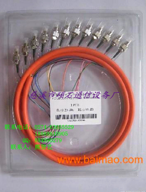 束狀尾纖:可將多芯光纜(如4芯、6芯、8芯、12芯)扇形(束狀)分開并裝上連接器插頭實現(xiàn)多芯光纜分纖連接,方便室內(nèi)連接及配線架(ODF)密集安裝。防水尾纜組件一般用途野外惡劣環(huán)境,對器件的可靠性要求較高。本公司采用工藝和設(shè)備生產(chǎn),保證了優(yōu)良的性能和環(huán)境穩(wěn)定性。產(chǎn)品類型有單芯、雙芯和4芯等供用戶選擇。