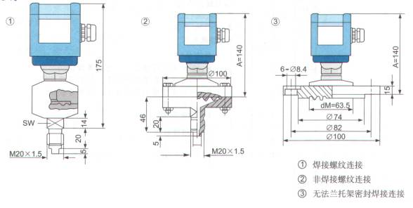 1、 焊接螺紋連接 2、 非焊接螺紋連接 3、 無法蘭托架連接。 |