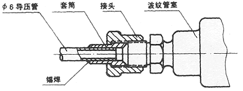 ● 旋下接頭將直徑為6毫米的金屬導(dǎo)壓管的一斷錫焊在套筒上,然后旋緊接頭使連接管密封,