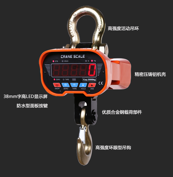 1、良好的動(dòng)態(tài)稱重性能,不因重物的晃動(dòng)而影響稱重效果。 2、開(kāi)機(jī)、關(guān)機(jī)自動(dòng)電壓顯示。 3、集成度高,具備很高的可靠性。 4、1,000,000的內(nèi)部分辨率帶來(lái)的和高穩(wěn)定度。 5、自動(dòng)關(guān)機(jī)功能,杜因關(guān)機(jī)而造成電池?fù)p壞。 6、超載、報(bào)警顯示,電池容量低于50%時(shí)報(bào)警。 7、配無(wú)線遙控器,方便操作。 8、累計(jì)、自動(dòng)累計(jì)、去皮、遠(yuǎn)距離去皮、數(shù)值保持。 9、鉤環(huán)表面進(jìn)行鍍鉻處理,光潔防銹。