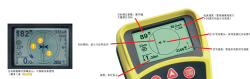 實時顯示的管線探測和定位的信息。