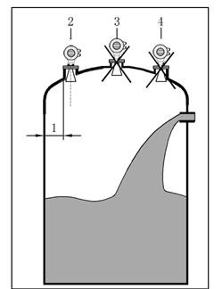 - 喇叭天線必須調(diào)整至垂直,不要讓雷達束指向罐壁。