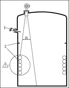 - 如果罐內(nèi)有(1)(2)干涉物件,應(yīng)采用導波管進行測量。