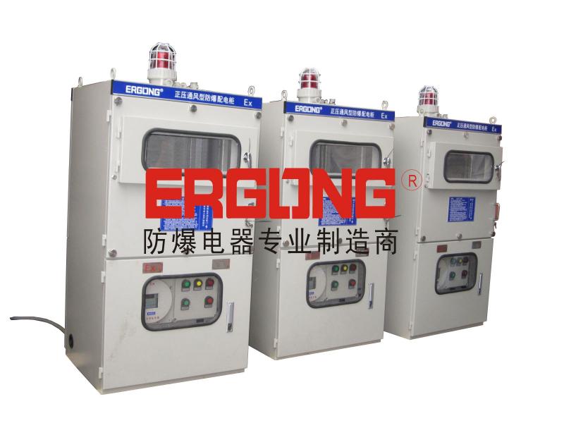 采用介質(zhì)隔離點燃源的防爆措施。即:把用戶所用的電器元件安裝在一個充滿正壓潔凈氣體的柜體內(nèi),使外部環(huán)境中易燃易爆的混合性氣體無法接觸到電器元件在正常工作時所產(chǎn)生的電火花或危險溫度,從而達到電器防爆的目的。