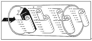 | 在流體中設(shè)置非流線型旋渦發(fā)生體(阻流體),則從旋渦發(fā)生體兩側(cè)交替地產(chǎn)生兩列有規(guī)則的旋渦,這種旋渦稱為卡曼渦街,如圖(一)所示。 |