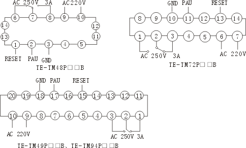3、TE-T48P42B、TE-T72P42B(雙設(shè)定雙數(shù)顯4位時(shí)間繼電器)使用說(shuō)明: