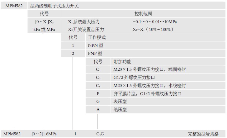 麥克 MPM582型 兩線制電子式壓力開關 型譜 優(yōu)惠中
