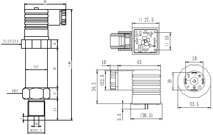 麥克傳感器MPM480[0-100]KpaE22B1PC型壓力變送器