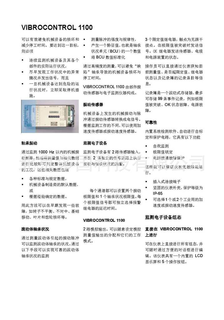 VIBROCONTROL 1100采用微處理器技術(shù),特性如下: